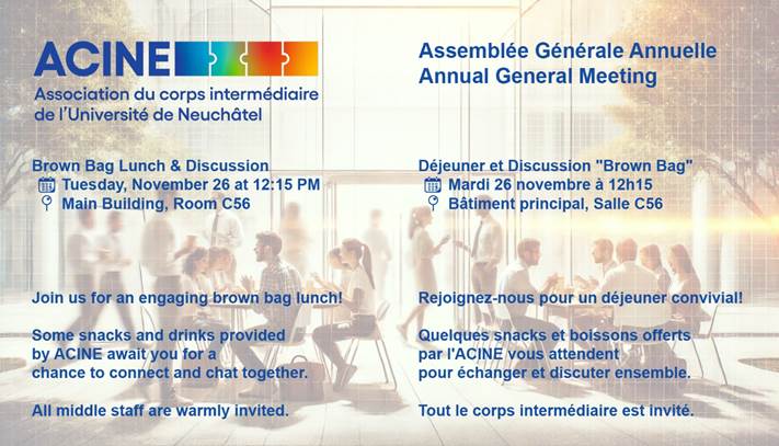 Rejoignez-nous pour un déjeuner convivial. Une boisson offerte par l’ACINE vous sera proposée afin de partager un moment d’échange et de discussion. Tout le corps intermédiaire est invité.