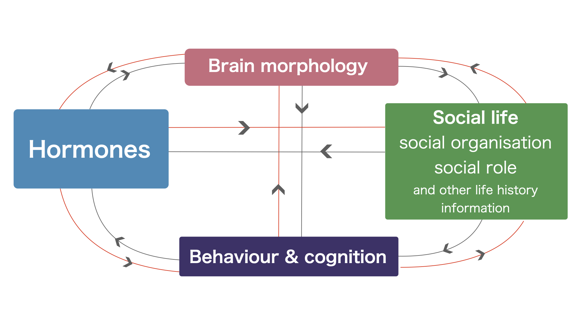 Sexual selection theory posits that traits such as bright colours and larger size increase mating success in males, often resulting in pronounced sexual dimorphism, where males are competitive and females are choosy. Cognitive processes play a key role in shaping behavioural strategies related to reproduction, which may lead to differences in the cognitive mechanisms between the sexes. To explore these questions, we are studying sex-changing species, which provide an ideal system for examining the interplay between biological predispositions and environmental factors. In sequential hermaphroditism, found only in fishes among vertebrates, individuals first reproduce as one sex—male in protandry or female in protogyny—when they are young and small, and later switch to the opposite sex as they grow older and larger. This sex change involves significant gonadal, physiological, and neural transformations. As a result, individuals must navigate the unique social and environmental challenges associated with each sex throughout their lives, adapting their life history strategies as they transition from one sex to another. These species offer a unique opportunity to examine how cognitive and brain morphological differences emerge in response to both nature and nurture.