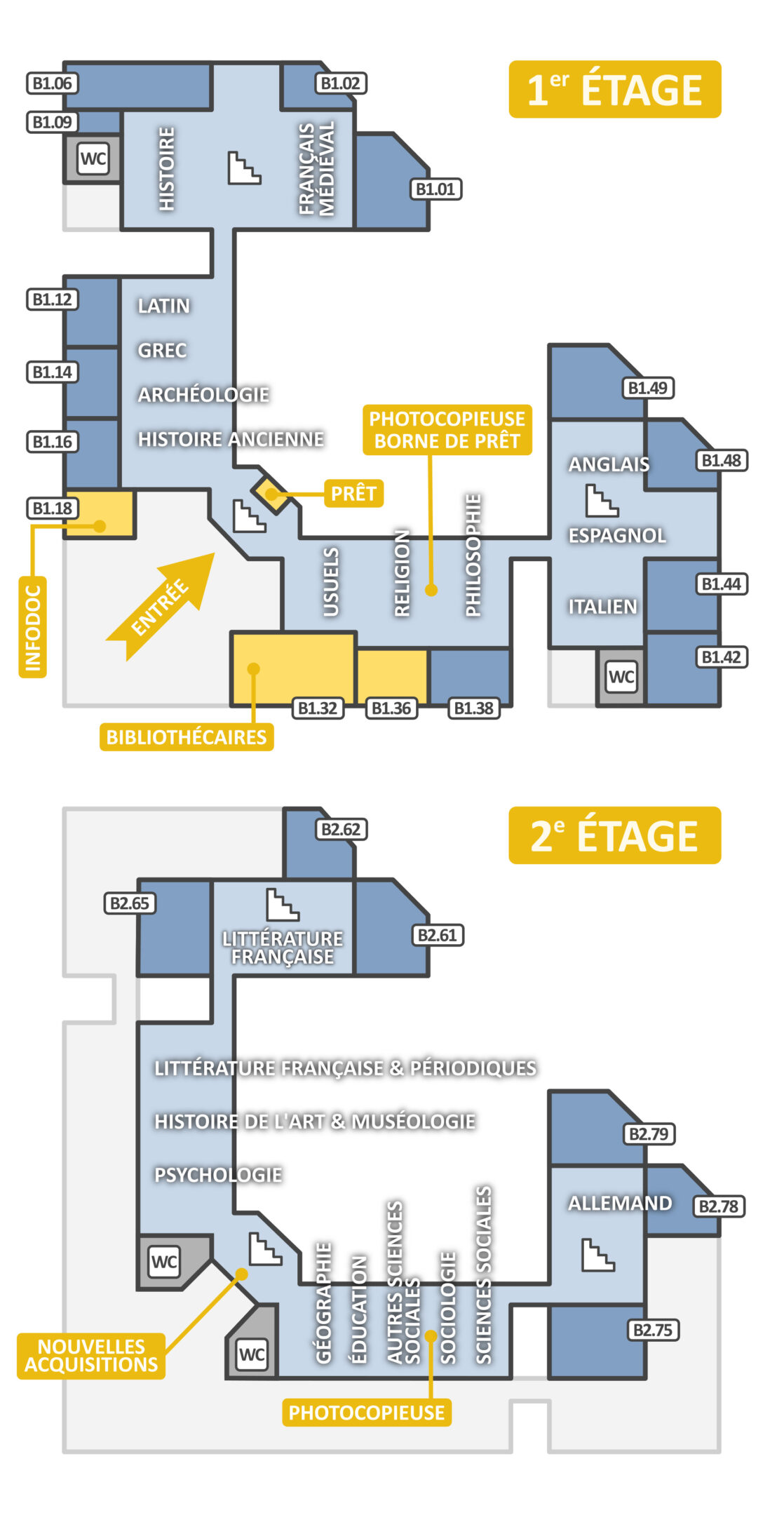Accès wifi; 2 espaces de détente au premier étage; 2 photocopieuses-scanneuses; borne de prêt