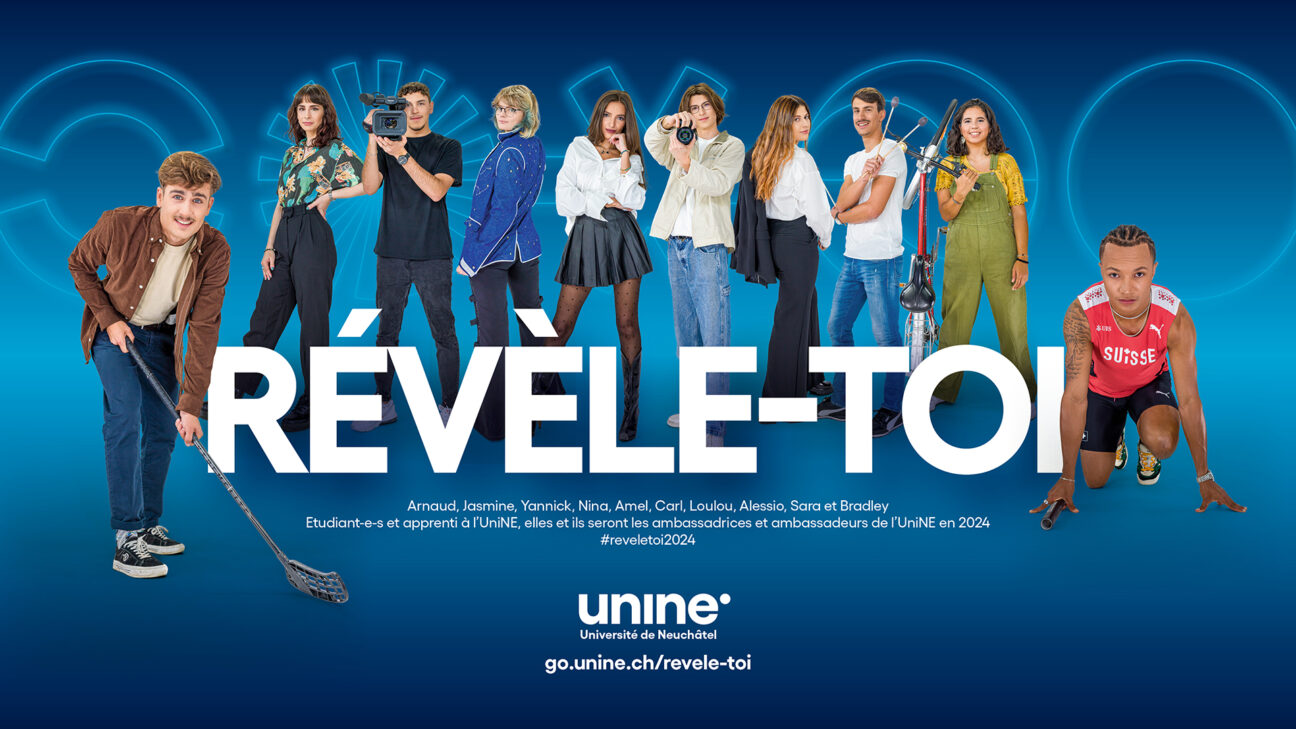 Pour sa nouvelle campagne de promotion 2024 l’Université a choisi de donner la parole à des étudiant-e-s provenant de l’ensemble des quatre facultés. Ainsi Sara, Bradley, Amel, Alessio, Loulou, Yannick, Carl, Nina, Arnaud et Jasmine témoignent sous de multiples formes sur les différents atouts de l’UniNE.