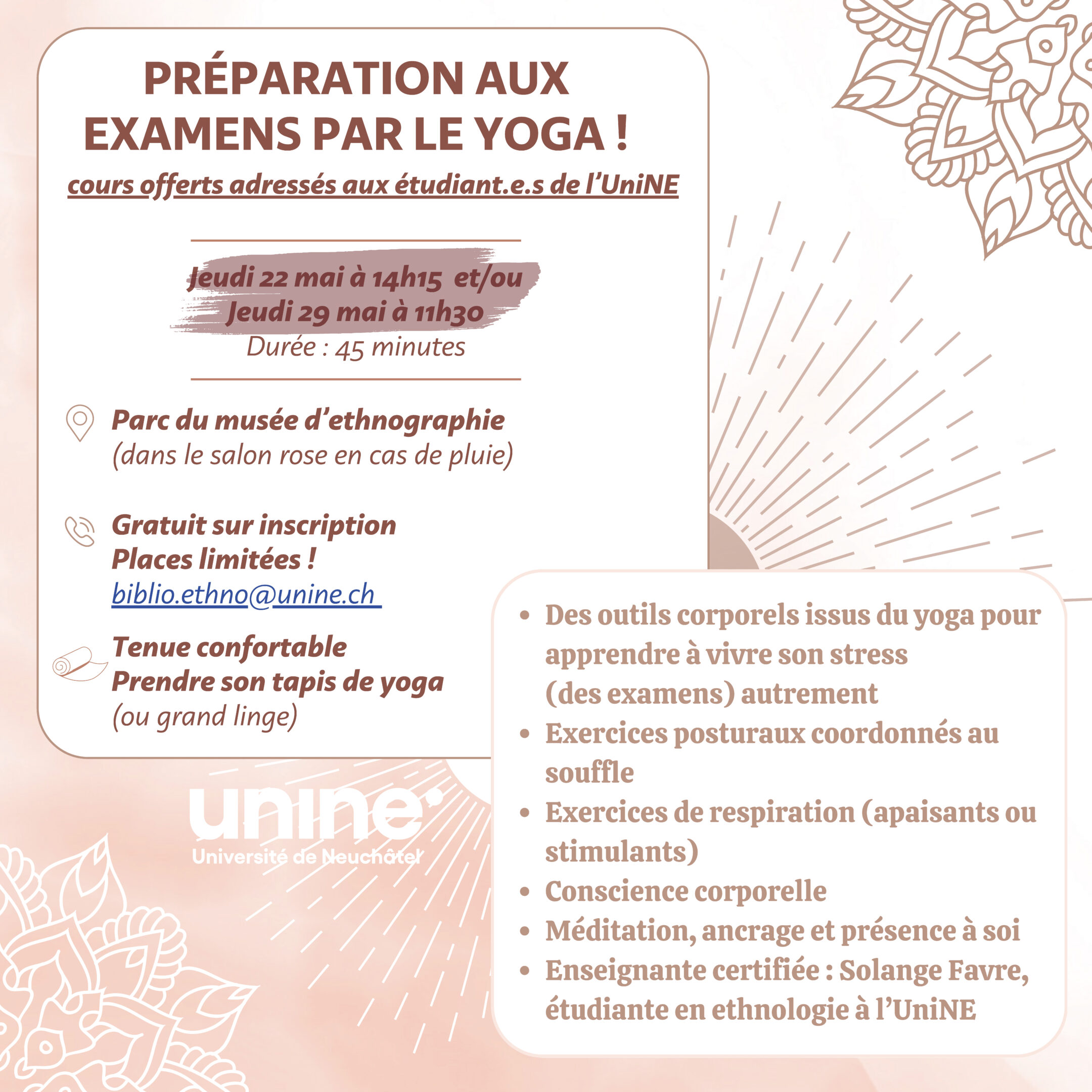 Inscriptions: Cours gratuits sur inscription. Les places sont limités, merci de vous inscrire par mail à biblio.ethno@unine.ch.