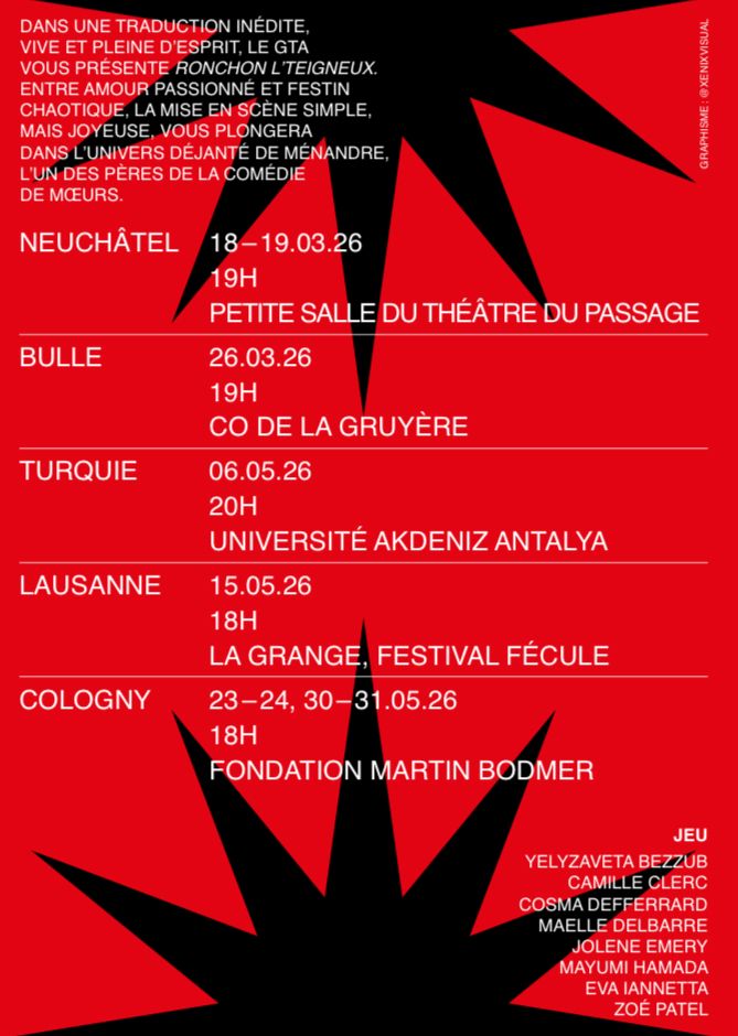 - Neuchâtel, 18 & 19 mars, 19h, Petite salle du Théâtre du Passage.