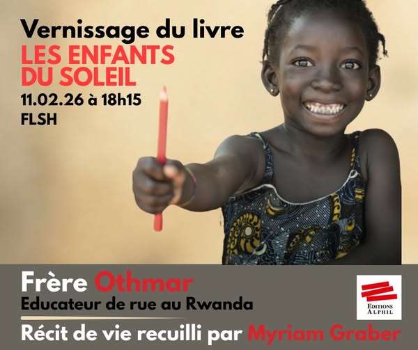 Vernissage du livre « Les enfants du soleil » le mercredi 11 février 2026 à 18h15, Salle RN02, Espace Tilo-Frey 1, 2000 Neuchâtel.