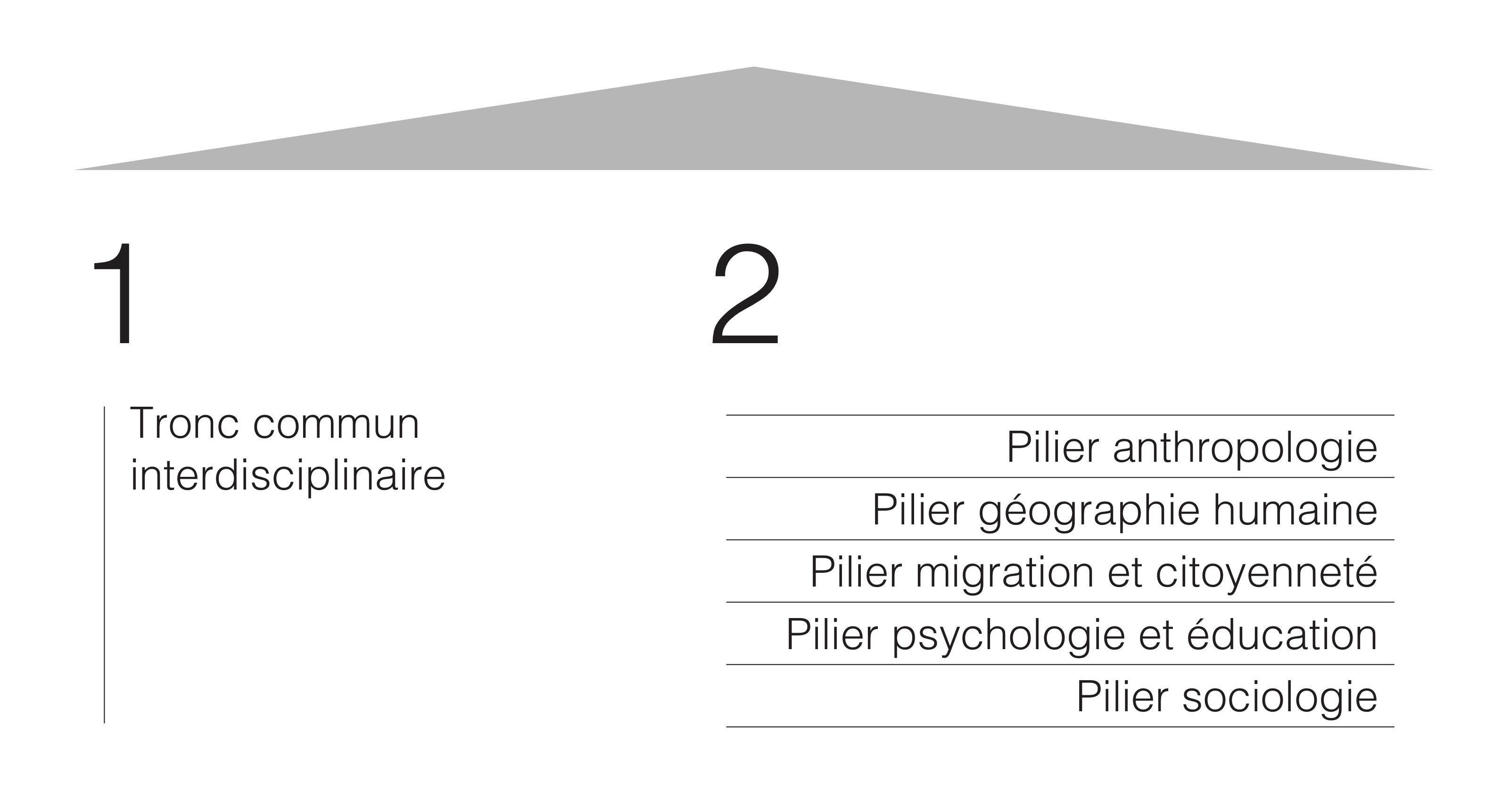- Pilier principal à 60 ECTS : Vous pouvez faire un pilier secondaire à 30 ECTS (MA ScS ou MA FLSH) et 30 ECTS dans un bloc libre.