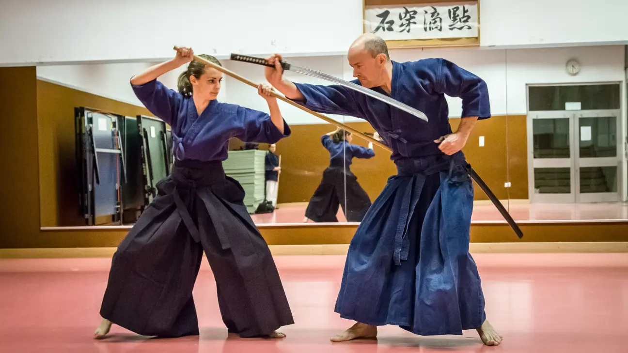 Arme japonaise. Art du bâton (1m28). Traditions martiales classiques des XVIe et XVIIIe siècles. Maîtrise de soi et précision.